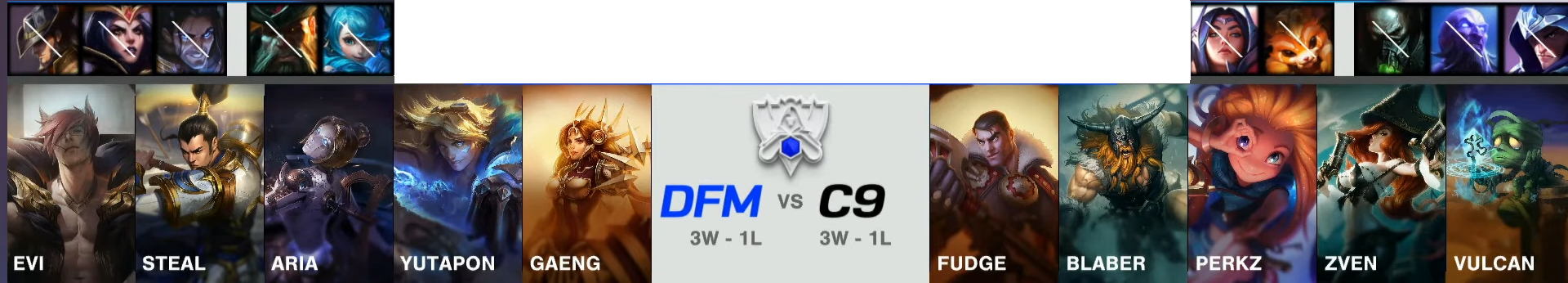 After obliterating Beyond Gaming earlier in the day, DFM had earned a tiebreaker game against C9 and were looking to redeem themselves after losing against them on day 1. However, DFM were a very different team this time around as they had been ramping up over their last few games and managed to draft a much better composition: