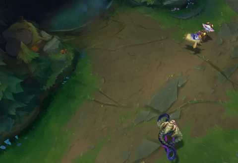 E – Zoomies! – Yuumi heals, and grants movement speed and attack speed. This heals whichever ally she is attached to, or herself if she isn’t attached to an ally.